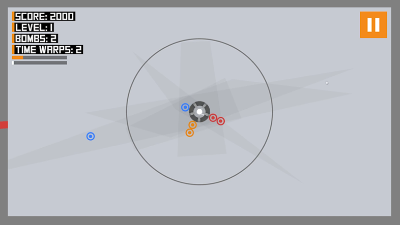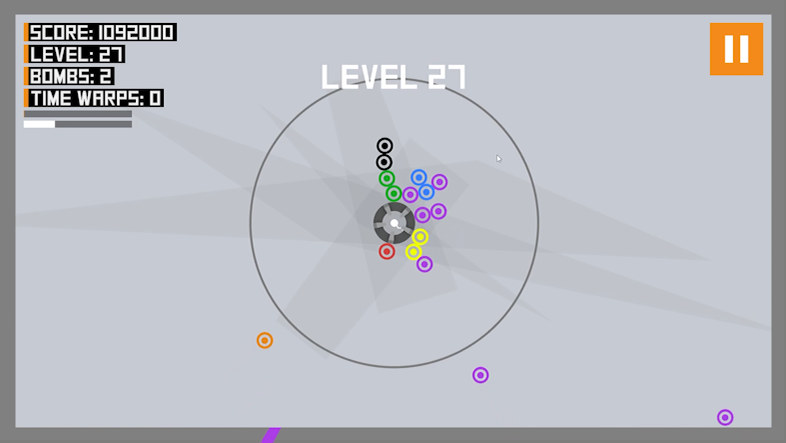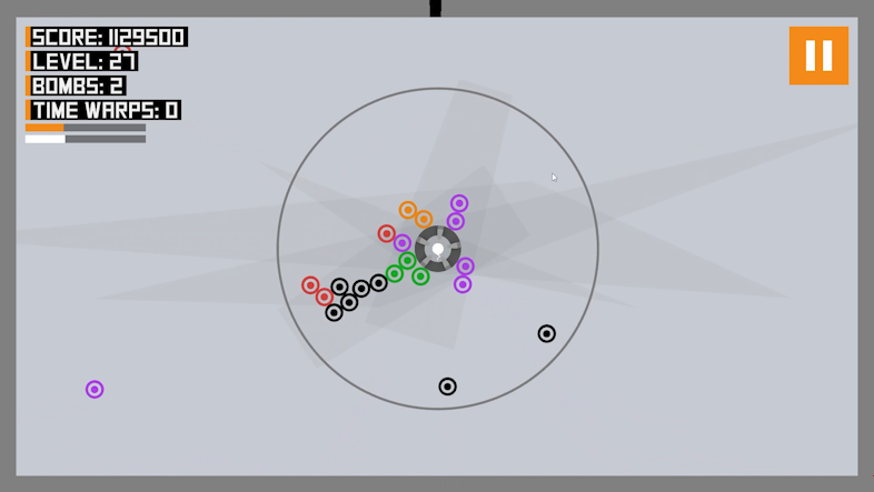 A strange anomaly has developed and it is attracting different types of particles. Rotate the center ring to match similarly colored particles with each other. Connecting three or more similarly colored particles will make them explode and disappear. This prevents too many particles from accumulating and reaching the outer ring which will cause a catastrophic explosion and end the game.