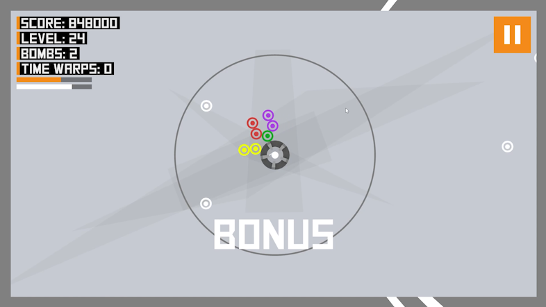 If you rarely mismatch the colors of the particles, a bonus mode will be triggered. White particles will begin to appear and these can destroy any particles they touch. White particles give bonus points when destroying other particles.