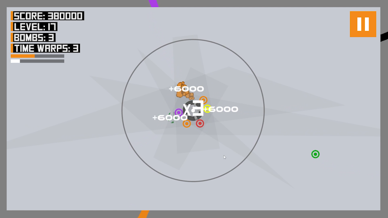 If you rarely mismatch the colors of the particles, a bonus mode will be triggered. White particles will begin to appear and these can destroy any particles they touch. White particles give bonus points when destroying other particles.